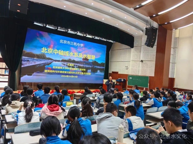 2024.03.19、2024.03.21、2024.04.03、2024.07.20王崇臣教授分别在北京市八十中嘉源小学、东城区黑芝麻胡同小学、北京市三帆中学和首都科学讲堂开展了“中轴线水智慧”的科普讲座。