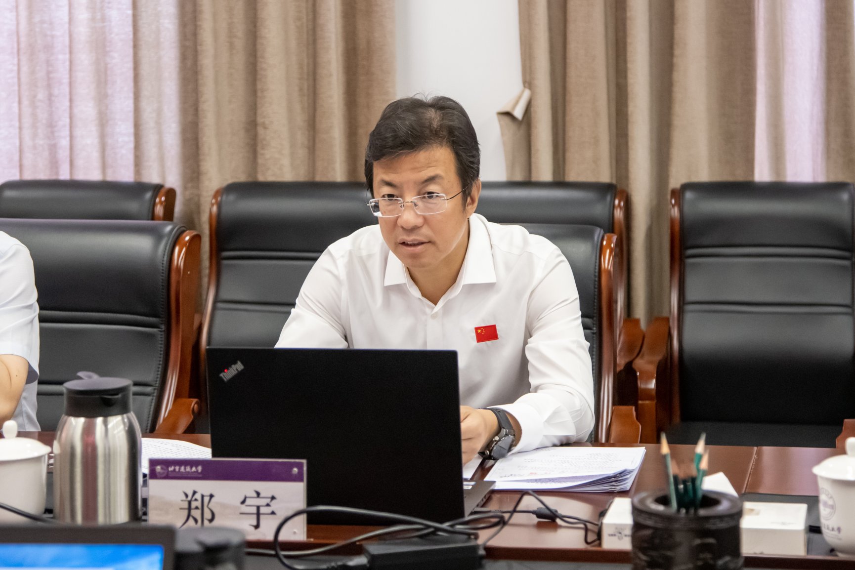 郑宇指出,学习习近平总书记在纪念中国人民抗日战争暨世界反法西斯战争胜利80周年大会上的重要讲话精神,是当前和今后一个时期教育系统的重要政治任务。要深入开展纪念中国人民抗日战争暨世界反法西斯战争胜利80周年主题教育活动,重点抓好深入学习领会,准确把握习近平总书记重要讲话的丰富内涵和重大意义;抓好系统宣传宣讲,深刻解读习近平总书记重要讲话的历史维度与时代价值;抓好全面贯彻落实,着力推动学习习近平总书记重要讲话精神见行见效。要进一步增强奋进新时代新征程的责任感使命感,不折不扣贯彻落实党中央决策部署,树牢首都意识,坚持首善标准,不断加强党的全面领导,高质量实施新时代立德树人工程,扎实做好学校各方面工作,以实际行动践行伟大抗战精神,不断推进高水平特色型大学建设新征程,为教育强国首善之区建设作出新的更大贡献。