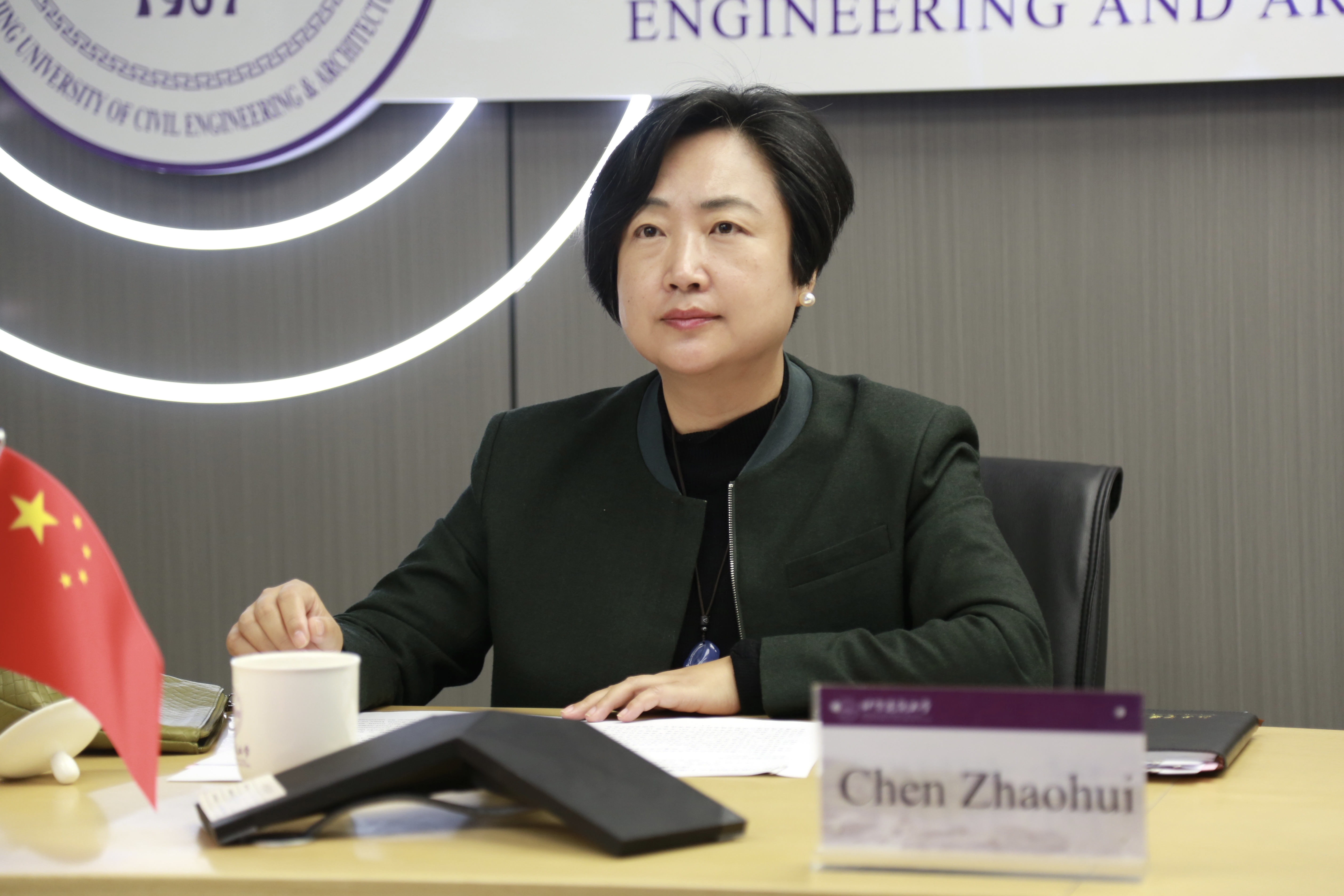 陈朝晖介绍了我校的基本情况与办学特色。她表示,学校作为百年市属高水平大学,立足首都功能核心区,在城市规划、测绘科学、建筑遗产保护等领域具有深厚积淀,相关学科发展水平位居国内前列,具备良好的国际合作基础。