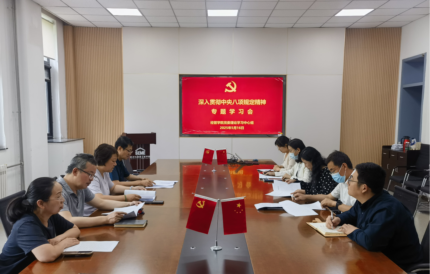 5月16日上午,经管学院党委理论学习中心组在学A-316会议室召开深入贯彻中央八项规定精神学习教育专题学习,党委理论学习中心组全体成员、科级干部共同参与学习,会议由党委书记赵海云主持。