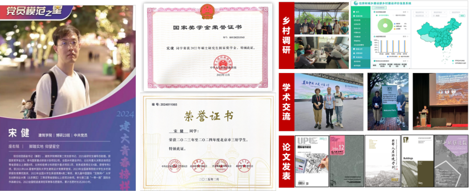 来自安徽建大的宋健博士,硕士期间就崭露头角,获得国家奖学金,还记得刚入校时他只顾埋头画图,我带他跑了14个北京传统村落,使他从“只会画图”成长为能够独立开展乡村责任规划师工作。今年,他拿着“北京市三好学生”的奖状对我说:“老师,是您让我知道,规划不是画图纸,而是给土地写故事。”