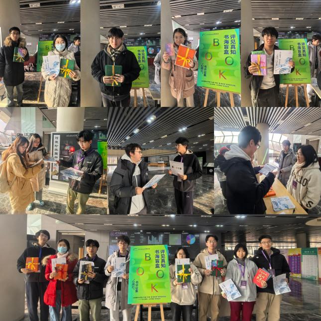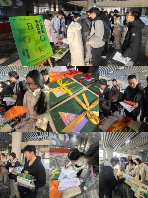 为丰富活动形式,激发师生参与热情,本届征文活动还特别设置了“书海盲盒·评见真知”线下推介活动。12月10日,在图书馆一层大厅,精心布置的图书盲盒展台吸引了众多师生驻足。展台上,几十个色彩斑斓的盲盒整齐排列,每个盲盒内都藏有一本精心挑选的书籍。盲盒图书涵盖建筑艺术、文学经典、科技前沿、人文社科等多个领域,参与者只需领取、登记,即可获得一个随机图书盲盒,开启属于自己的阅读之旅。这种新颖的活动形式打破了传统阅读的框架,让师生在感受盲盒惊喜的同时,也激发了阅读的热情。“我抽到了《平凡的世界》,这本书我一直没机会阅读。这次盲盒活动让我有了一个与经典相遇的机会!”一位参与活动的学生兴奋地分享道。另一位学生则表示:“盲盒的形式让我对阅读充满了期待,这种未知的惊喜感正是阅读的魅力所在。”