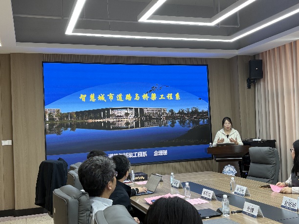 在交流环节,张锋教授分享了哈工大未来交通设施系在专业布局、科研方向、人才培养及就业导向等方面的特色做法。金珊珊教授全面介绍了我院道桥系在专业建设、培养方案修订、科技竞赛与学生就业等方面的情况。随后,双方围绕培养方案优化、AI+教学改革、科研合作方向等议题展开深入讨论。
