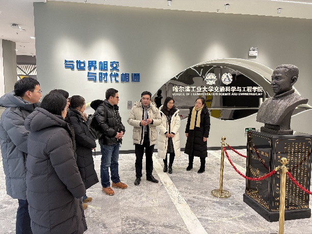 座谈会后,北建大一行参观了哈工大交通科学与工程学院院史馆,王东升书记讲解回顾了学院自创立以来的辉煌历程,系统介绍了在学科建设、科研创新、人才培养、国际交流及社会服务等方面取得的标志性成就。